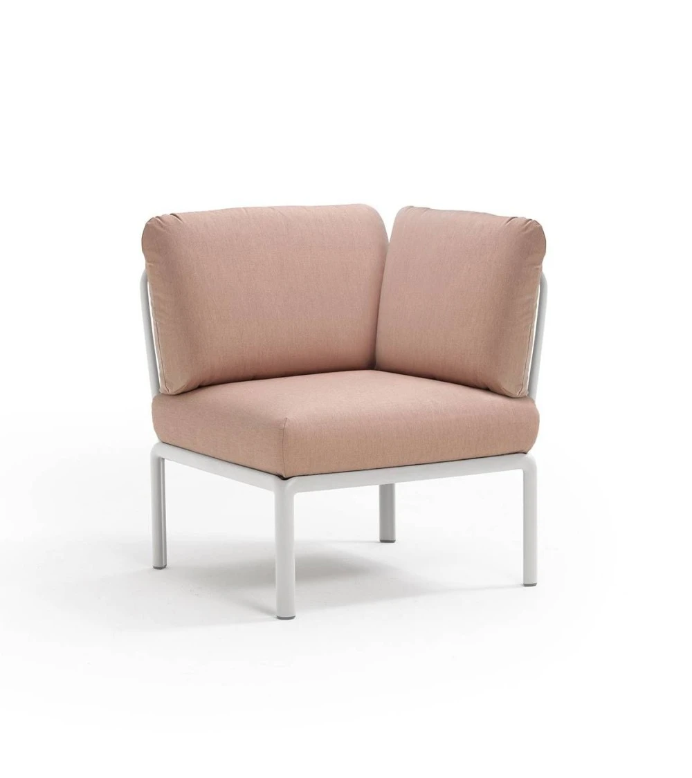 L’élément d’angle KOMODO fait partie de l’ensemble modulaire NARDI qui se configure selon vos envies. Les dossiers et accoudoirs s’accrochent de n’importe quel côté.