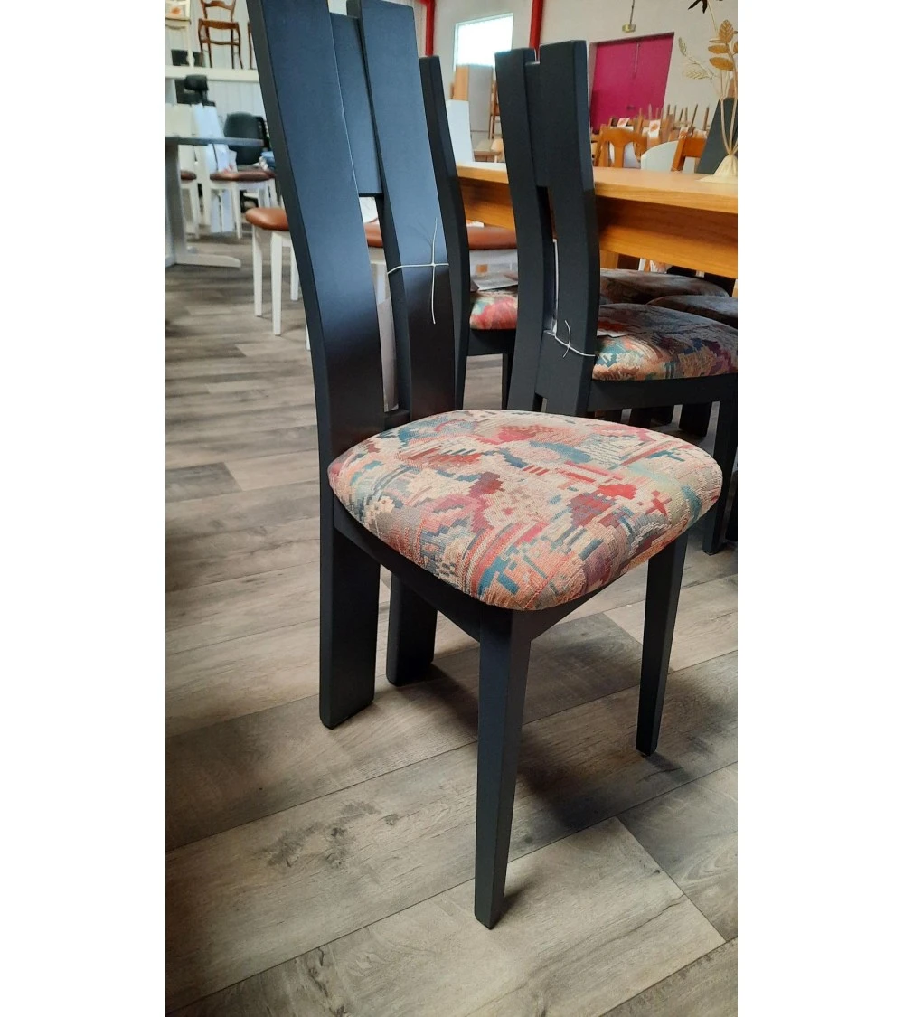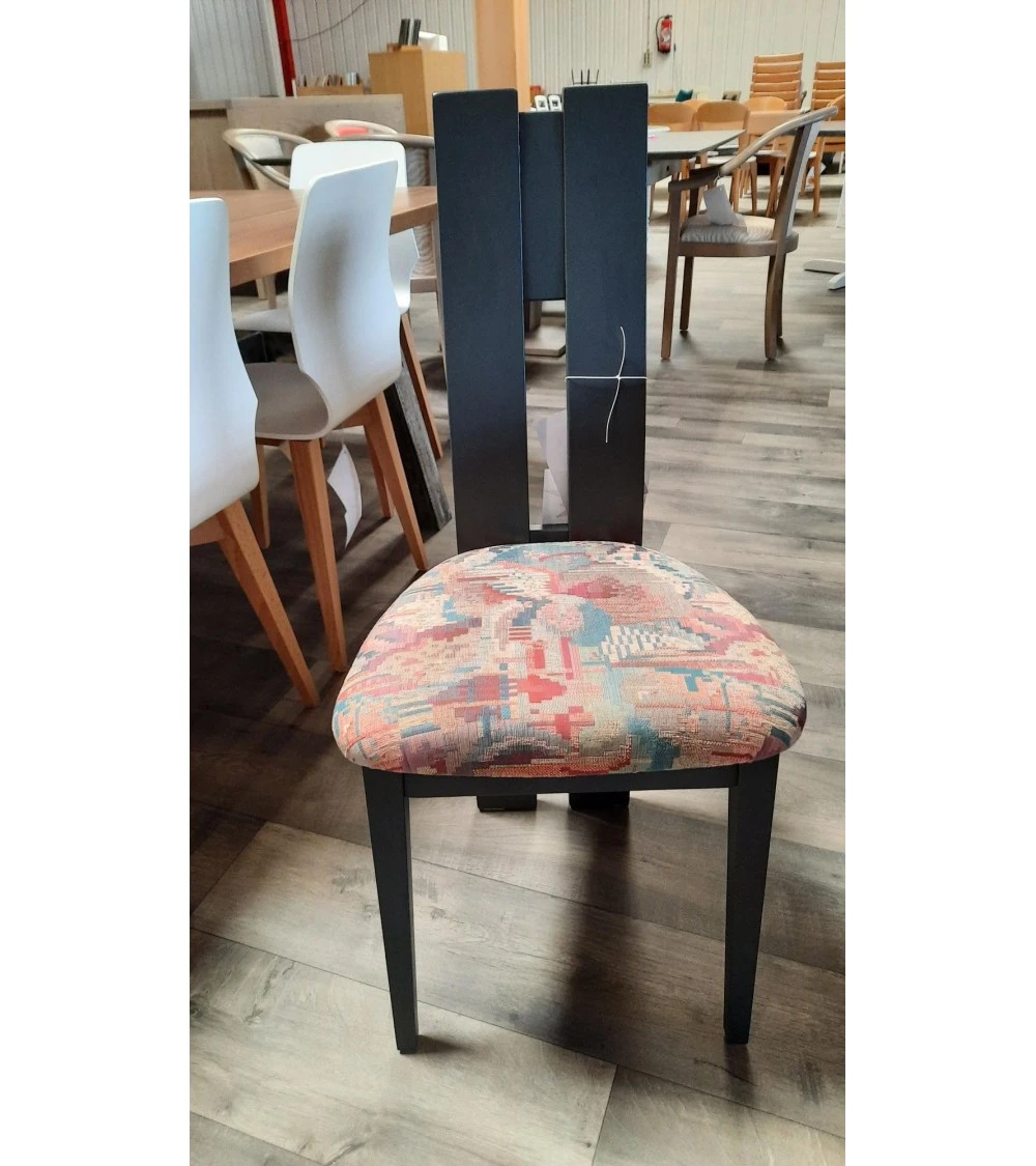 Cette chaise en bois massif associe élégance et confort, avec son assise en mousse multicolore. Elle se fondera parfaitement à votre table de salle à manger.