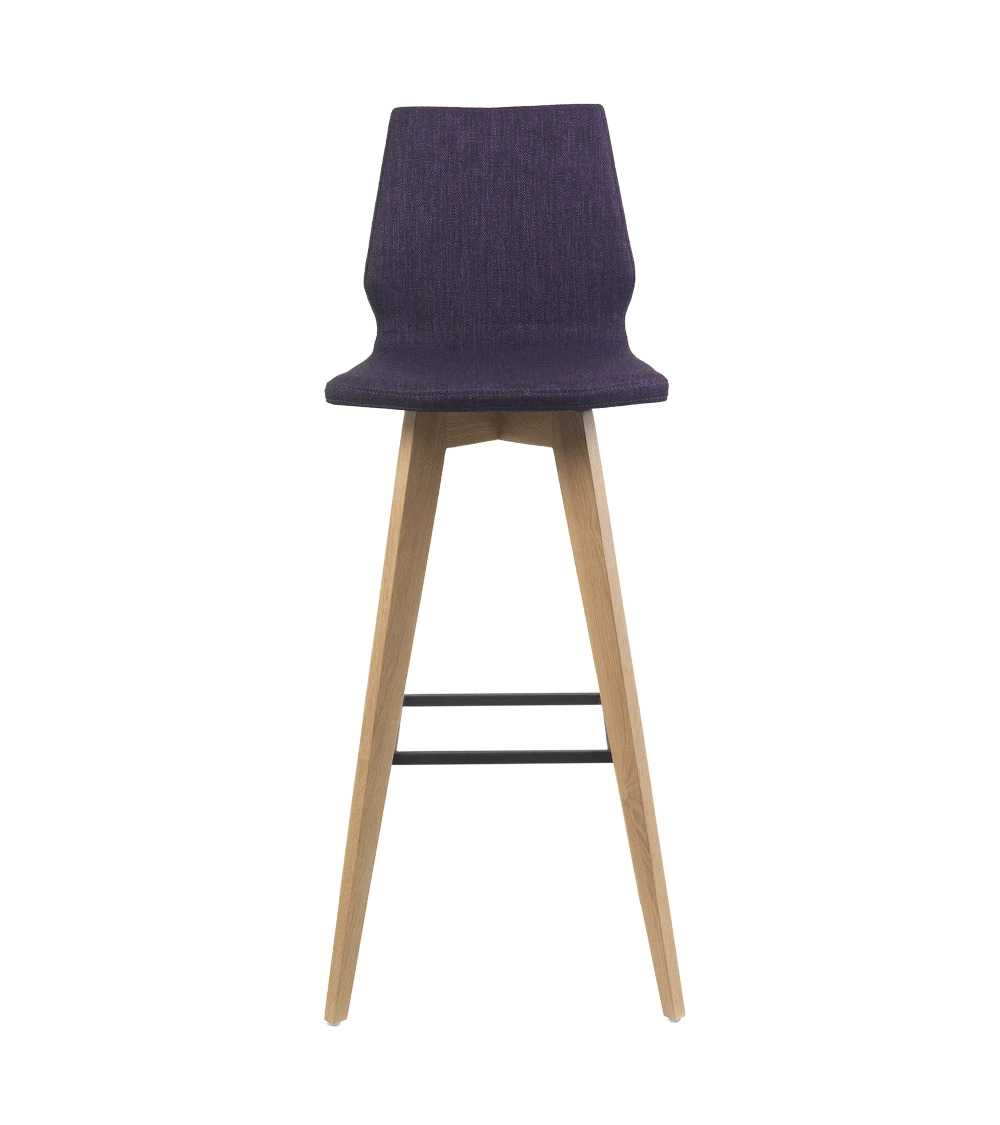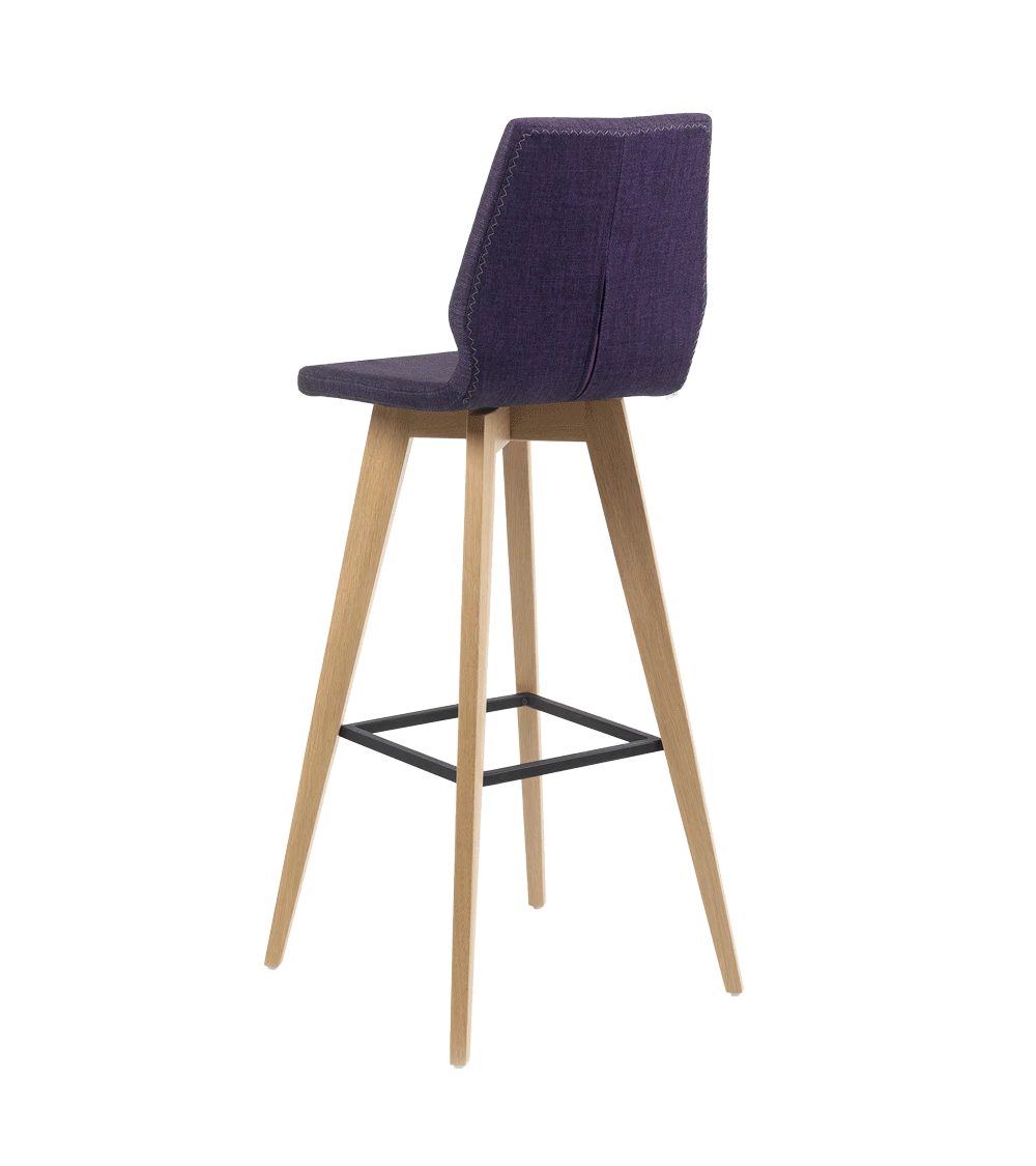 D’une hauteur de 82 cm, elle permet de prendre place sur une table haute ou un bar de 100 cm. Son piétement en bois issu de forêts gérées durablement est complété par un repose-pied métallique (noir).