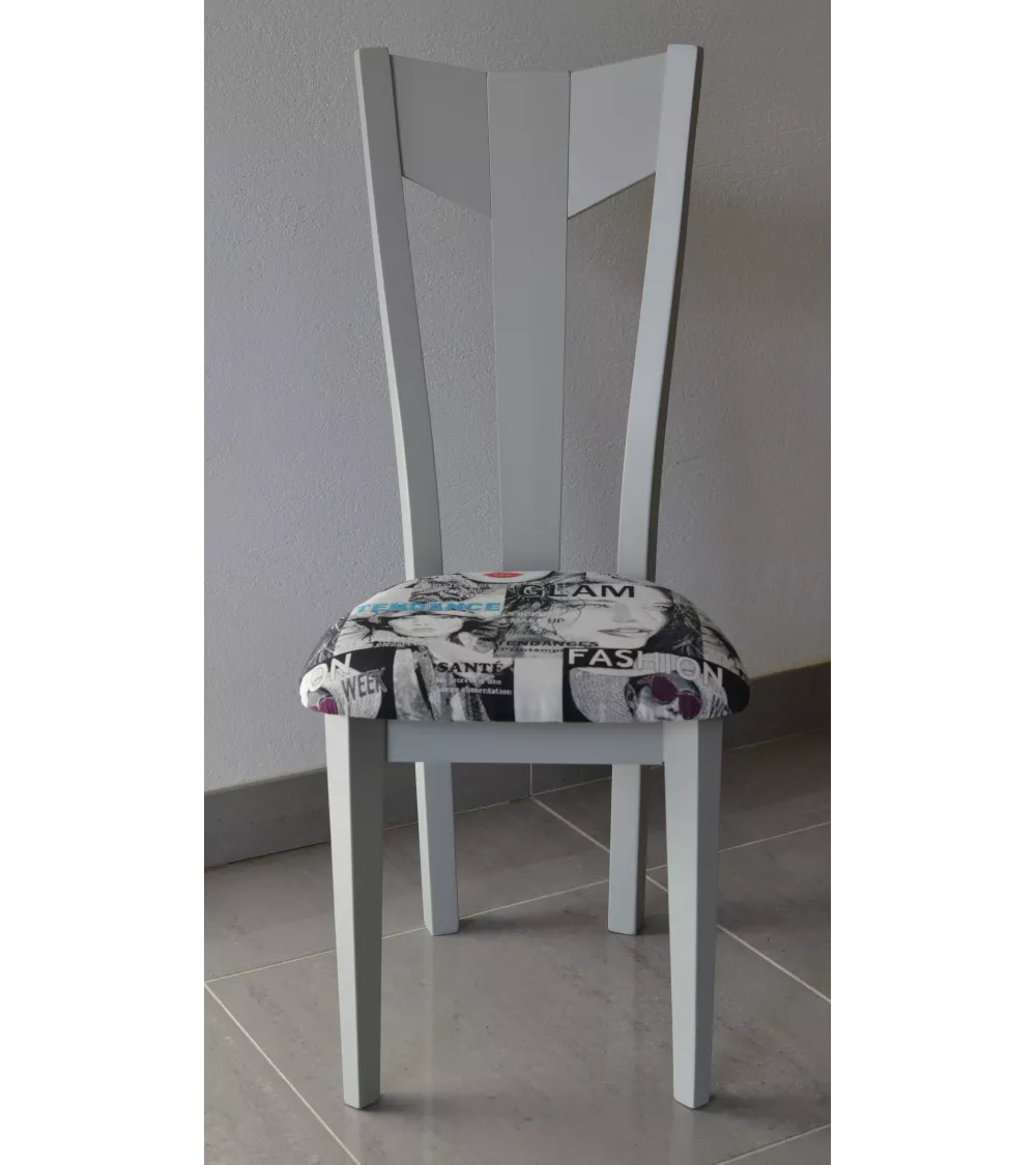 Chaise lisa en hêtre massif laquée gris clair design plume