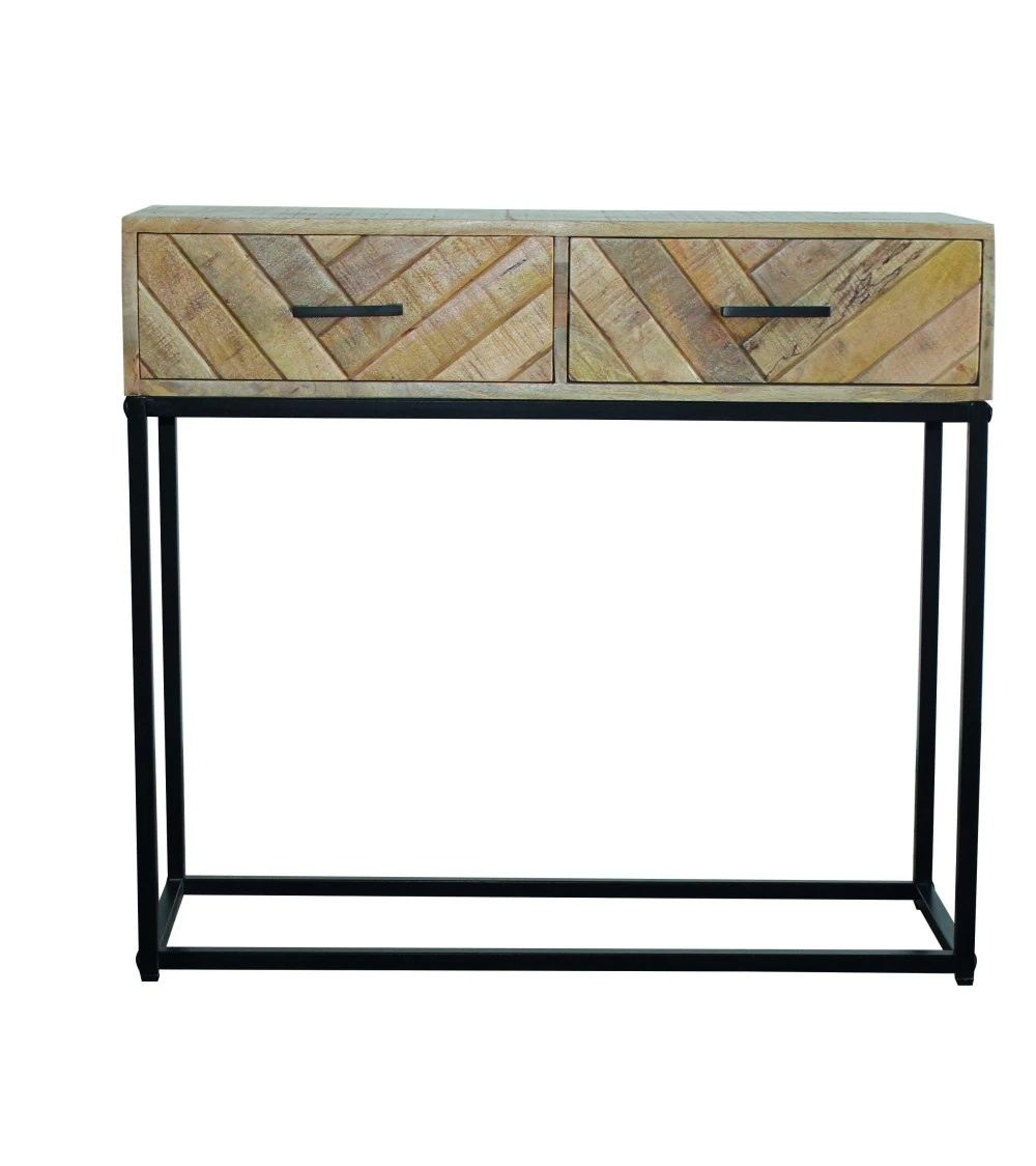 La console Tapan est idéale pour meubler une entrée ou un couloir. Une console en mango pratique pour déposer ses affaires et les ranger dans les tiroirs. Un petit meuble original et esthétique avec son côté graphique.