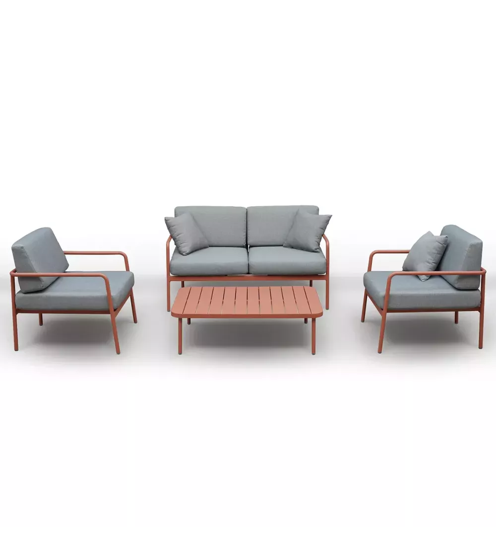 ensemble composé d’un canapé d’une table et de deux fauteuils avec coussins.
