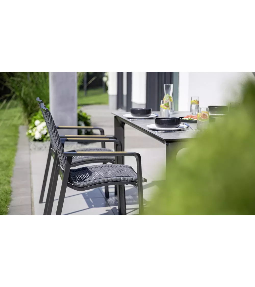 * Un cadre fin et filigrane en aluminium avec siège et dossier en corde