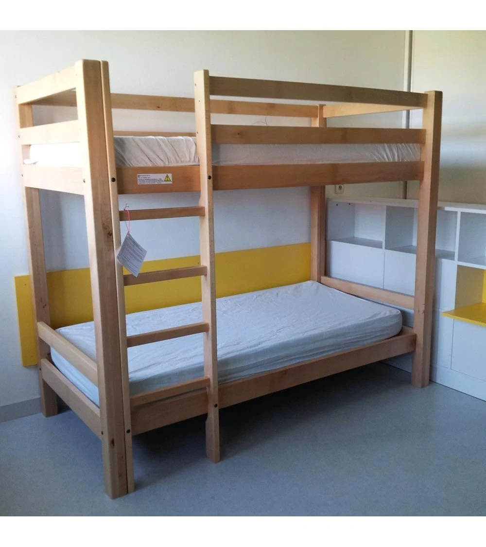 Des lits superposés en hêtre massif à la solidité éprouvée. Ultra résistants, ce sont des lits adaptés à un public difficile, idéal pour des hébergements collectifs. Des lits fabriqués en France dans nos ateliers.