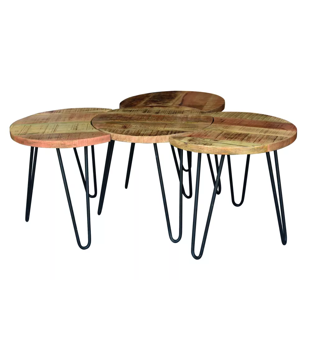 Des tables basses très originales en bois de manguier, fabriquées par Meubles du monde.
