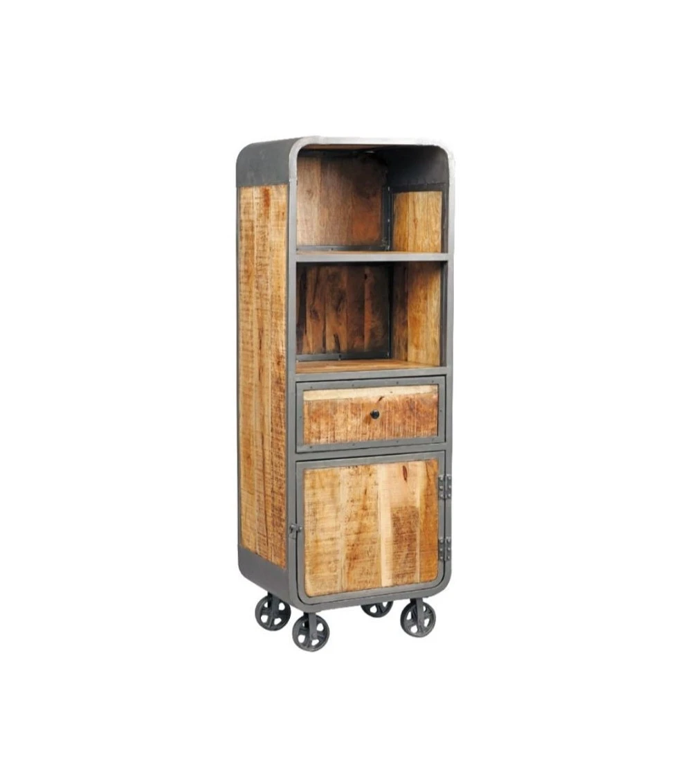 Meuble de rangement possédant une structure en acier brut finition vernis fabriquée par Meubles du monde.