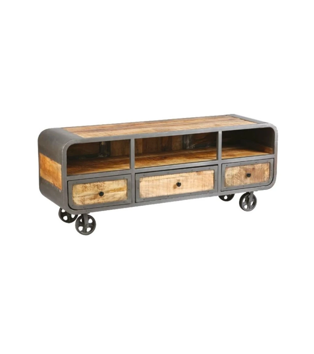 Meuble de rangement possédant une structure en acier brut finition vernis fabriquée par Meubles du monde.