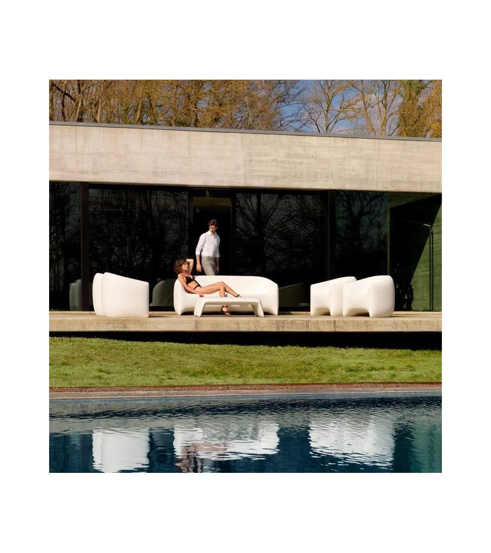 Laissez-vous surprendre par la qualité de l’ensemble de salon BLOW. Il est conçus pour un usage en extérieur avec ses propriétés anti-UV, anti-chocs et sa résistance aux températures extrêmes. L’origine de son design se trouve dans un coussin gonflé se courbant pour nous enlacer de confort.