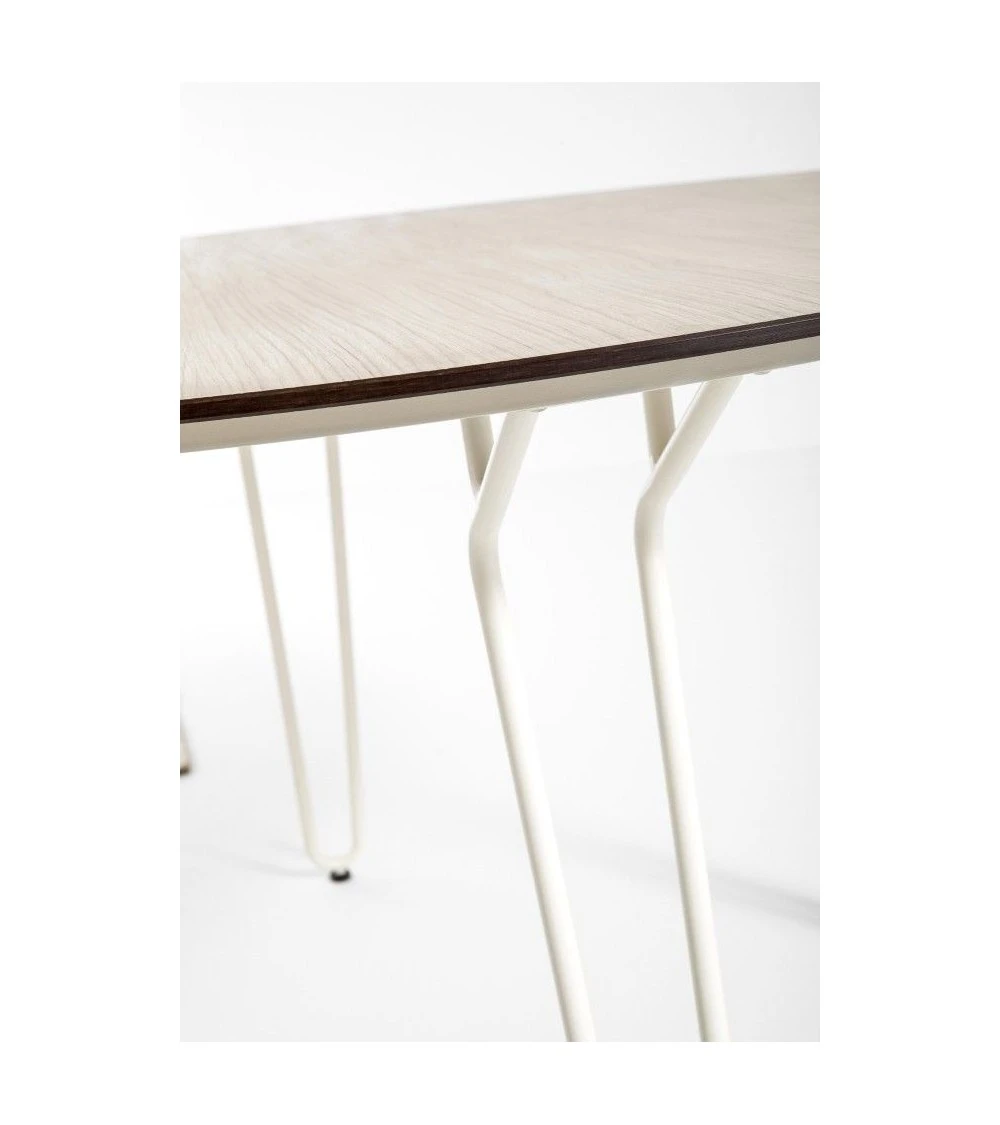 – pieds Crème absolute, plateau aspect Bois naturel